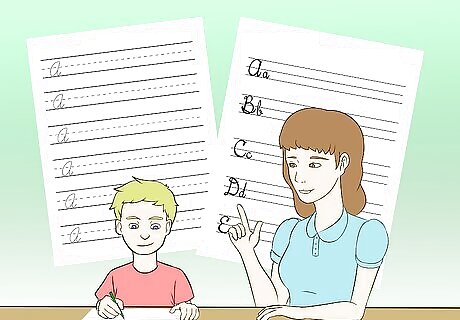 Get your child to start writing. When your child is able to read cursive writing, have them begin to practice writing it. Start off with things such as cursive practice sheets that show how to write the letters, and make sure they're doing both uppercase and lowercase letters. It's best to get them to try writing all of the letters, and then seeing which letters were difficult for them. Ask your child which letters were the hardest for them to write, and then help them practice. Be aware that your child may find another way of writing a letter, such as writing their lowercase F so the lower loop is to the left of the line. Don't chide them on this - as long as you can still tell what the letter is, it doesn't need to be corrected.