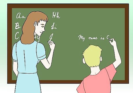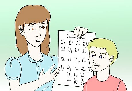 Start on the basics. Once your child is in about third or fourth grade, or expresses a wish to learn cursive, get them started on learning. It's best to have a sheet that shows every letter in cursive, in uppercase and lowercase, and start them on reading it, as cursive can be very difficult to read initially. You can start your child on writing cursive, if you wish, but if they begin reading it first, you will be able to show them an example of what cursive typically looks like, how it's connected, and what letters are what.