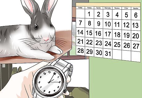 Spend time with your rabbit. In order to establish the trust you need your rabbit to have for you, you should spend time with it every day. Trust takes time, and you need to continue to spend time with your rabbit to maintain it. Try to spend several minutes a day with your rabbit to establish and maintain trust. Incorporate other people so the rabbit learns to trust people, instead of just you.