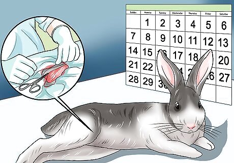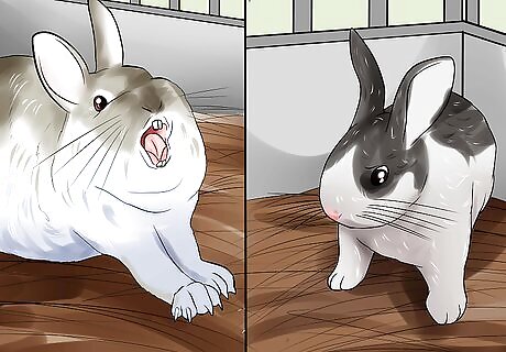 Have your rabbit fixed. Rabbits can become dramatically more aggressive once they reach four months of age, as this is when they enter the mating stage of their life. If you do not have your rabbit fixed at this age, hormones can make the rabbit very aggressive. Rabbits are calmer and more docile after being fixed, which makes them better pets and reduces problem behavior. Fixing your rabbits will make it so you can safely keep more than one rabbit together without violence or reproduction issues.
