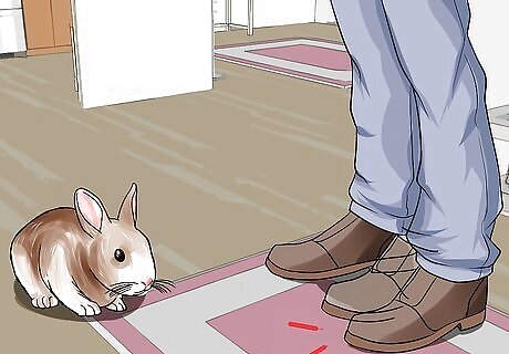 Use body language to teach the rabbit lessons. Rabbits are keenly aware of their surroundings and will recognize changes in your body language. If you want to indicate your displeasure with something the rabbit is doing, change up your body language so it recognizes a difference. Stomping your foot is an audible way to get the rabbit’s attention and demonstrate that you are not happy with what it’s doing. The rabbit may react fearfully to this the first few times, so be sure to give it space. Turning your back to your rabbit will let it know that you are unhappy with it and over time can adjust the rabbit’s behavior.