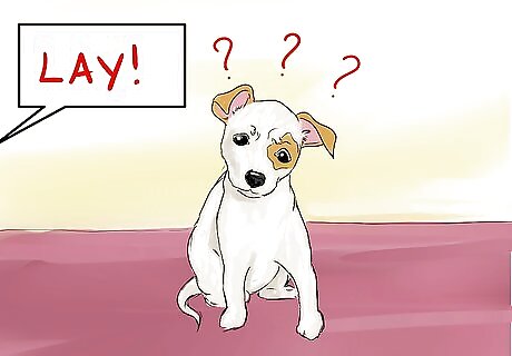 Repeat this until he begins to grasp the concept. With enough repetition, he should begin to lay down when you pass your hand over his head to place it on his shoulder blades. Once he is at this point, you can resume teaching him as outlined in the General Method