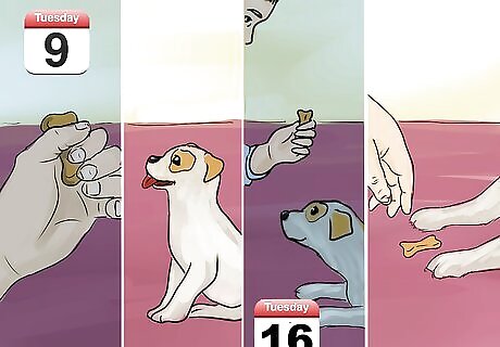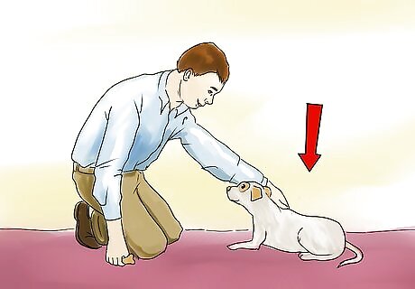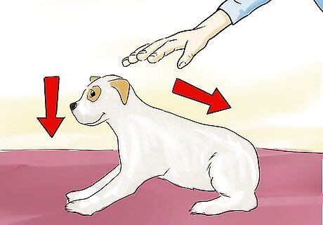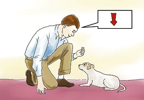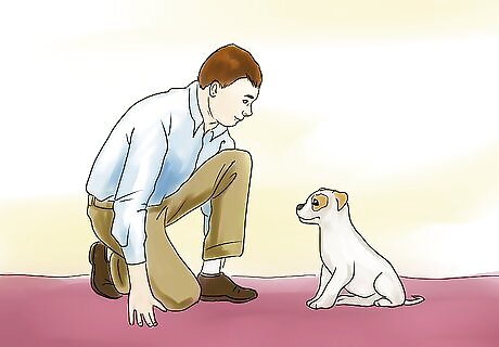 Kneel on the ground next to your dog, making sure your dog is facing you.