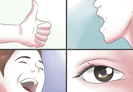 Talk about eye contact. Autistic people often have trouble with eye contact, and may find it distracting or upsetting to make. Explain to them that non-autistic people usually like eye contact, and teach them some ways to fake it. Let them experiment and find what works best for them. Ask if they are comfortable making eye contact. If they aren't sure, ask them to look you in the eye. A few autistic people can handle eye contact (but for most it is painful or counterproductive). Discuss potential places they could look to feign eye contact: at the person's nose, mouth, eyebrows, or chin. They may want to practice on you, or in the mirror.