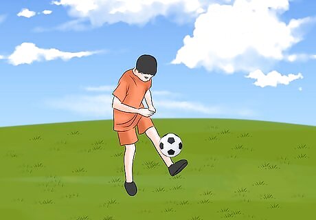 Practise shooting. Begin by focusing on accuracy, once they can hit the target consistently you can start to encourage them to add some power to their shots. It is important from a young age that you kick the ball using the laces of your boots and don't hit the ball with your toes. Don't shoot at the goalkeeper, aim for the corners whenever possible.