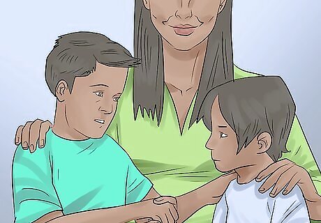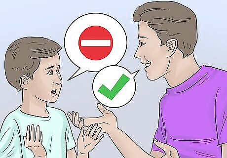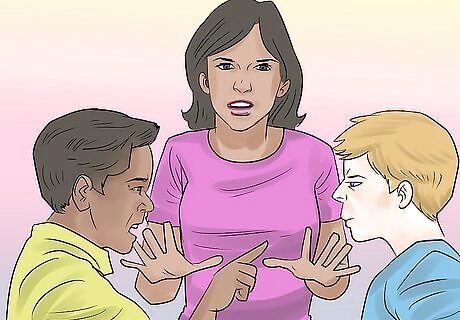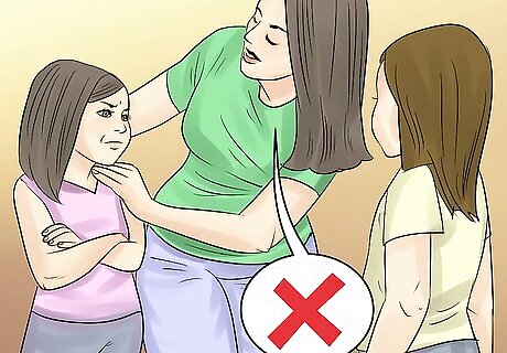 Help your child stay calm. Children often have difficulty regulating their emotions. When a disagreement surfaces, help your child stay calm during the conflict. Children may get angry or feel passionate. During these times, encourage your children to remember to stay calm. Teach your child to recognize messages from their body that indicate they might be getting frustrated. Do they start clenching their fists or does their face feel hot when they get frustrated? Helping your child identify these signals means they can use calming techniques before they lose control. Help your children learn techniques to stay calm. Have your child, for example, take a series of deep breaths, count to 10, or make an effort to relax their bodies. You can also remind a child to take a break from a discussion if they're getting worked up. For example, say something like, "You seem to be getting upset. Would you like to talk about this later?" Teach your child they sometimes have to be a bigger person. If a friend or family member is yelling or disrespecting them, tell your child to walk away instead of getting mad in return.