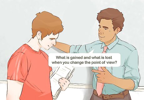 Talk about how point of view can change/affect a story. Once students understand the different types of point of view, you can start to discuss the effect that point of view has on a story. Talk how about different people see the same thing differently. For example, you could give the students a simple scenario and ask them to write 3 short paragraphs about it -- 1 in first person point of view, another in second person, and a final paragraph in third person point of view. This will help demonstrate how the perspective impacts the story.