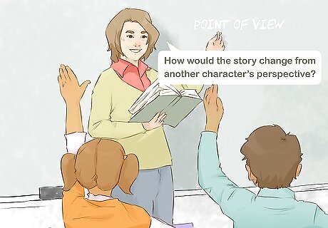 Read books to the class that express different perspectives. Some books may tell the same story from the perspectives of 2 or more characters. Read these stories with your class and discuss them afterwards. Some good picture books for younger students include Voices in the Park by Anthony Browne, Two Bad Ants by Chris Van Allsburg, or I Wanna Iguana by Karen Kaufman Orloff. If you're teaching high school or college, use a novel with multiple points of view, such as The Brief Wondrous Life of Oscar Wao by Junot Diaz or The Sound and the Fury by William Faulkner. Ask the students questions after you read to see if they understand the different perspectives. For example, you might ask, “Why did the character act that way?” or “How did the character feel when that happened?”