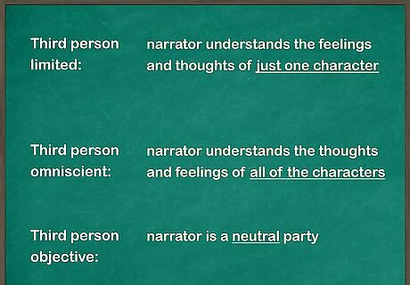 Create a point of view chart with different characters from a story. When you assign reading for homework, ask students to fill out a point of view chart. In one column, ask them to name the characters in the story. In the other column, they should write down the perspective of each character. Make sure the students identify if the story is in first, second, or third person. If it is in third person, ask them to define if it is limited, omniscient, or objective.