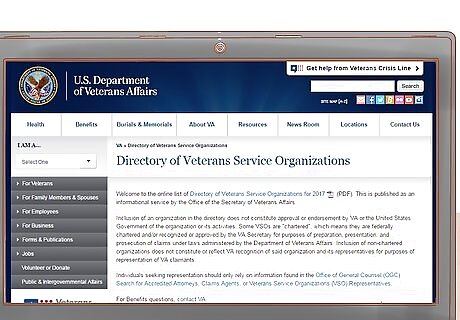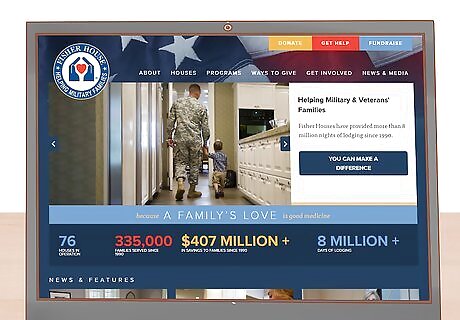 Volunteer to help a veterans group if you have free time. Find a veterans organization close to you and give them a call or sign up to volunteer online. Look for VA hospitals or organizations like the Disabled American Veterans in your area. You could help with events, raising money, or helping veterans and their families readjust to civilian life. Volunteering is a great option if you don't have the money to donate. You can be a caregiver, serve food, or drive veterans to events and medical appointments. If you have special skills or expertise, the veterans organization could possibly use them. Additional volunteer organizations include The Fisher House Foundation, Hire Heroes USA, and Homes for Our Troops.