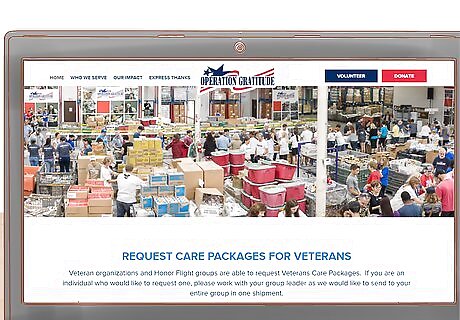 Send a care package to veterans instead of donating money. Organizations like Operation Gratitude have programs that enable citizens to mail care packages to those that have served. Search online for charities or programs that ship care packages to veterans and send one to a veteran in need. If you live in the United States, visit https://www.operationgratitude.com/request-package-group/veterans/ to request a care package for a veteran you know.