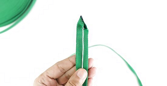 Pinch open the sides on the flat end of the webbing. Grab the narrow edges at the uncut end of the webbing and squeeze them together. As you pinch the sides, the opening in the middle of the tubular webbing will widen. Let go of the sides to see if the end stays open, and if it doesn’t, continue pinching them together until they do. If the end doesn’t stay open, run a flame around the edges for 1–2 seconds while you’re pinching the sides so they don’t bend as easily.