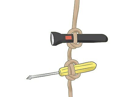 Keep vital tools nearby by hitching them to your ropes. This is especially helpful at sea, where there is an abundance of rope but a serious risk of tools going overboard. Keep them secure and at an easily grabbed height with a marlinespike.