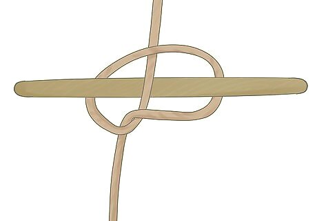 Slide the hitch (your wrench, nail, etc) over the first half of the loop. Take your long object and slide it into the right side of the loop, coming from the front.
