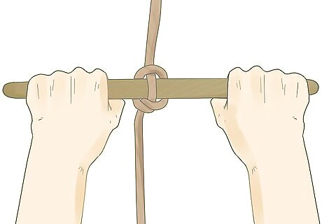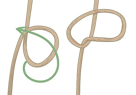 Create a loop in the middle of the rope by pulling the bottom of the rope upwards. Pinch the rope with two fingers, then pull the bottom of the rope up and to the side so that you have a small, roughly 1" diameter loop at the bottom of your rope. Where you create this loop determines where your knot will be. Unless you're putting your hitch at the very bottom of the rope, you should still have free-hanging rope underneath your loop.