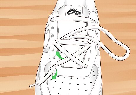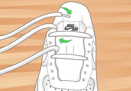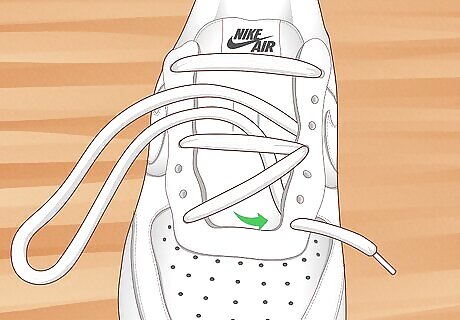 Thread the same shoelace end through the first eyelet on the right side. Still working with the same end of the shoelace, pull it up to tighten, then maneuver it under all of the already-threaded shoelaces and toward the toe of the sneaker. Then, pass it through the first eyelet on the right side, going from inside to outside. Make sure to tighten your laces to a normal tightness after each of these steps.