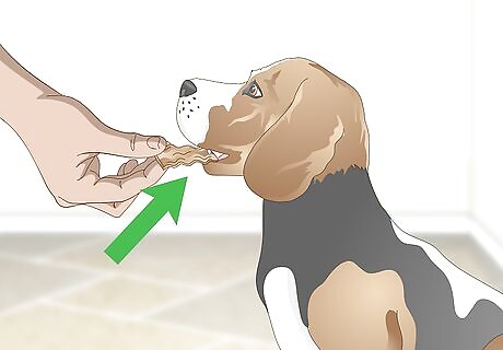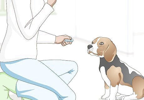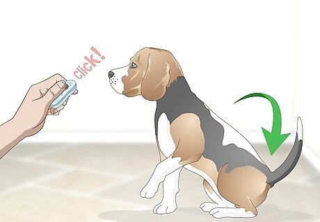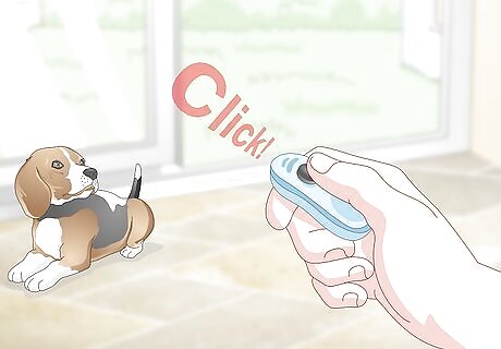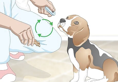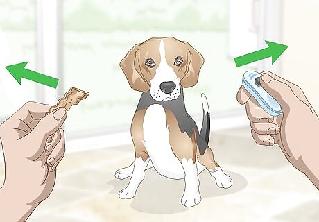 Give your dog a treat right away. Right after you click, give your dog a treat. If you spent time loading your clicker first, your dog will already anticipate a treat after it hears the click.