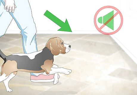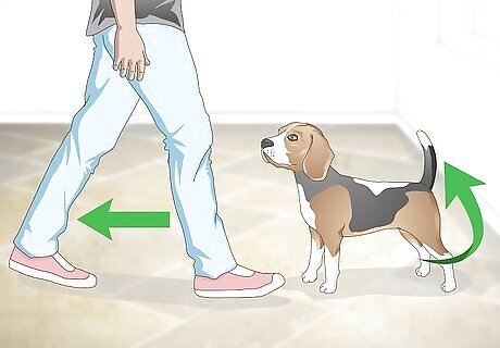 Back away a few steps to get your dog standing again. If you have the clicker and treats that your dog likes, chances are it will follow you when you back away. If not, you can try waiting for a bit, or calling your dog by name to see if it will stand up at the sound of your voice. If your dog keeps sitting or lies down, it may be tired. Try to postpone training until after your dog is more rested.