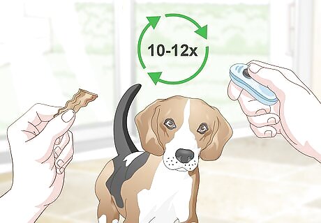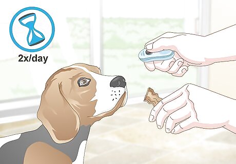 Repeat loading your clicker twice a day for 2 days. Do the 10-12 click and treat successions twice each day for 2 days. Space out the loading of your clicker to improve your dog’s association between hearing the noise and getting a treat. Try loading your clicker once in the morning and once in the afternoon or evening for the best results.