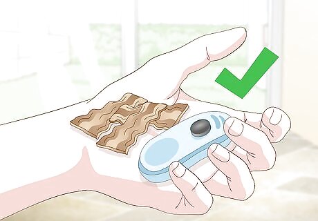 Give your dog a treat right after you press the clicker. Have a treat ready in your hand when you press the clicker button. As soon as you click once, give your dog its treat.