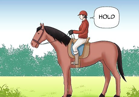 Train your horse to recognize cautionary cues. Walk your horse around its pen and slow it down while saying, “Hold,” “Easy,” or another verbal cue. Repeat your verbal cue of choice every time you slow your horse. This way, your horse will come to associate the word you selected with the action of slowing down and moving more cautiously.