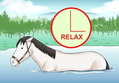 Let your horse relax around the water. When your horse first enters the water, it might snort and show general reluctance to jump in. It might get in and out of the water a few times before it’s ready to make the crossing. Let your horse take a few minutes to drink if it chooses to. This will show the horse that water is a friend, not something to be feared. Your horse might also left and right along the length of the river or lake before it jumps in. Sometimes it helps to have an experienced horse go across a stream first and let your horse follow it.