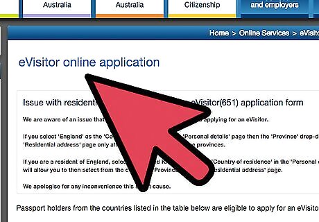 Apply for an eVisitor visa, if you want to visit Australia for travel or business and you are from an applicable European country. This is designed for travel of 3 months or less and you must apply for it outside of Australia. Visit www.immi.gov.au/e_visa/evisitor.htm to start an eVisitor application. Charges will apply.