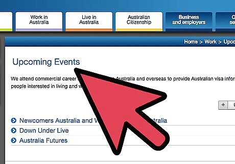 Attend a "Skills Australia Needs" event. The Australian government seeks out individuals with specialized skills, such as those listed on the SOL. Travel to 1 of these events to look for employment. You may need to travel to England or another country to attend this recruitment fair. Visit www.immi.gov.au/skillevents/upcoming-events.htm to view a list of these events.