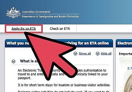 Apply for an ETA visitor visa. This is required for any short-term trip to Australia, and you will be required to prove you have an ETA before getting on a plane to Australia. It is good for up to 3 months. This visa will cost $20. You can apply at www.eta.immi.gov.au. If you currently hold another type of visa, or you are applying after an ETA is expired, you may have to appear in person at an Australian consulate to reapply.