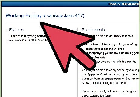 Apply for a working holiday visa. This visa is only available to people from certain countries who are between the ages of 18 and 30. It is designed to allow you to travel, supplement your income with work and/or study for up to 12 months. People from a specific list of countries, including the UK and many European countries, should apply for a subclass 415 visa to gain short term employment in Australia. With this visa, you can stay and work for up to 12 months, study for up to 4 months and work during this period. Visit www.immi.gov.au/visitors/working-holiday/417/how-to-apply.htm to get applications and learn how to complete them. People from various Asian and South American countries and the United States can apply for a subclass 462 visa. The restrictions on this visa are similar to the subclass 415 visa; however, you can only work with 1 employer for a period of up to 6 months. Visit www.immi.gov.au/visitors/working-holiday/462/usa/how-to-apply.htm to download applications and learn how to apply.