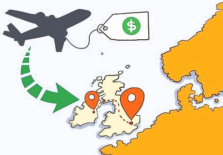 Fly into a small city nearby if you want to travel to a popular location. Flying directly to the city you want to visit may be more expensive than a flight to somewhere nearby. Compare prices for taking a direct flight to the area you want to visit as opposed to a smaller city in a different country. That way, you can easily travel by train or smaller airlines for much cheaper. For example, if you wanted to visit London, you may fly into Dublin instead for a cheaper flight and then travel to London from there.Tip: While layovers are usually annoying, choosing a flight that has 1-2 of them may be cheaper than a direct flight.