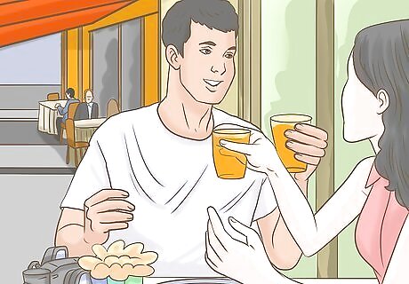 Get food from restaurants away from tourist sites to save money. Watch where locals are eating and go to those vendors or restaurants instead of touristy locations in the city. Travel a few blocks away from main tourist areas to find restaurants in your budget. Many times, you'll find food that's cheaper and more authentic to the region. If your accommodations have a cooking area, buy groceries and cook for a meal or two each day to save more money. Visit street vendors to try new foods without spending money on a full meal.