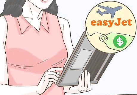 Use a low-cost airline to save money. Before reserving seats on an airline you're familiar with, check smaller airlines for more competitive prices. Budget airlines like Primera Air, Wow Air, and Norwegian Air offer one-way flights across the Atlantic Ocean for as low as $99 USD. Read the airline's terms and conditions before purchasing tickets since they may have hidden fees for items such as carry-on bags or checked luggage. In the United States, airline prices may be cheaper if you fly out of an international hub airport, such as O'Hare in Chicago, New York City, or Boston.