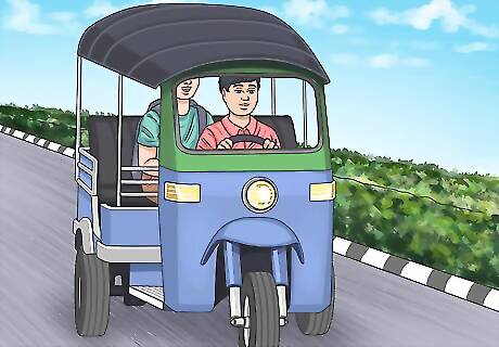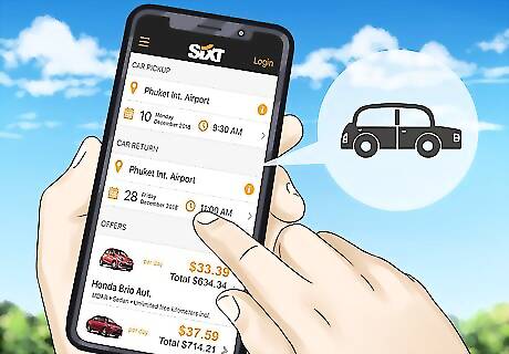 Hop on a Songthaew or Tuk-Tuk to experience local transportation. Songthaews and Tuk-Tuks are commonly used to get around Phuket. Songthaews are essentially a van/pick-up truck hybrid with wooden benches for passengers to sit on, and they are the most inexpensive travel option in Phuket. Tuk-Tuks are small yellow or red minivans, and they travel to main destinations in Phuket. Tuk-Tuks do not have meters, so you should negotiate your price before you leave, or you may pay much more than desired for your ride.