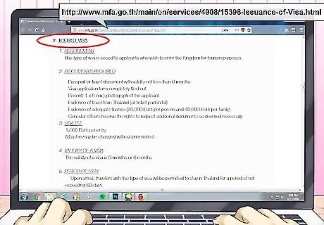 Apply for a visa if you want to stay more than 30 days. If you want to travel to Phuket for longer than a month, you need a non-immigrant visa as well as a valid passport. To figure out what documents you need, visit your country’s Thailand embassy website. Select the applicable visa category, browse the requirements, and complete the applications and outlined instructions. You can also visit http://m.mfa.go.th/main/en/services/4908/15398-Issuance-of-Visa.html to review the Thailand visa requirments.
