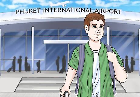 Fly into Phuket International Airport for the fastest travel option. The airport is nearby Phuket Town, and from there you can get to the beaches in about an hour. There are many direct flights to Phuket International Airport. Search online 3-4 months in advance to take advantage of low fares. Since Phuket is a large tourist destination, flights can get expensive. If you can’t find a direct flight to Phuket, schedule your flight to another major Thailand airport (such as Bangkok) and then fly to Phuket International Airport from there. This way, you can still travel to Phuket without a direct flight.