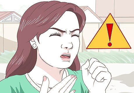 Look for symptoms of ammonia poisoning. Ammonia toxicity can occur if someone breathes strong ammonia fumes, spills or splashes ammonia on their skin or eyes, or swallows a product containing ammonia. If you suspect you or someone else has been exposed to dangerous amounts of ammonia, look for symptoms such as: Coughing, wheezing, chest pain, or difficulty breathing. Fever, rapid or weak pulse, or loss of consciousness. Pain and burning in the eyes, lips, mouth, or throat. Burns or blisters on the skin. Tearing in the eyes or temporary blindness. Confusion, dizziness, agitation, or difficulty walking.