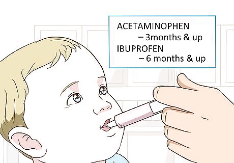 Use fever-reducing over-the-counter medication. Acetaminophen is safe for children 3 months and up, and ibuprofen is safe for kids 6 months and up. Look for over-the-counter medication that can be given in small doses and carefully obey the instructions. These medications often come in "children's formulas" that are safe for infants. If you have any questions about the dose your infant can receive, contact your doctor prior to administering it. Check with your doctor to see what dosages you should use. Avoid these medications if your child is dehydrated or vomiting, as it could make the condition worse.