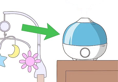 Run a humidifier to help your baby breathe better. A humidifier or cool-mist vaporizer sends moisture out into the room, which can reduce your baby's nasal inflammation and relieve stuffiness. Placing a humidifier in your sick infant's room may make it easier for him or her to fall asleep. Make sure that you change the water each day and clean the machine as directed by the manufacturer. You can also run the hot water in your bathroom and sit in the steamy room with your baby for 15 minutes at a time if you do not have a humidifier.