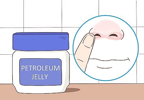 Apply petroleum jelly to your baby's nose to treat irritation. Rub a thin coating of petroleum jelly on the outside of your baby's nose to reduce irritation, focusing on areas that look red, chapped, or sore. Avoid using any medicated nasal sprays on your baby because this can make the congestion worse. Mentholated topical ointments and rubs are not recommended for children under the age of 2. If your baby is truly struggling with congestion, talk to your doctor during your visit about non-medicated rubs formulated particularly for infants.