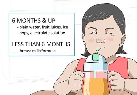 Give your baby fluids such as water and juice to keep them hydrated. Drinking fluids prevents dehydration and thins out nasal secretions. You don’t have to give your baby any extra fluids, but you should make sure that they continue ingesting the same amount of fluids as usual. For babies six months or older, try plain water, fruit juices, ice pops, or an electrolyte solution such as Pedialyte or Enfalyte. For children less than six months, breast milk is best, but you can also give them water. Breast milk provides immune-boosting properties that can help protect your baby from germs. If your baby won't take fluids, contact your doctor.