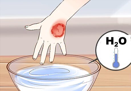Cover the wound from the burn with a sterile dressing. This will help to protect it from the environment, and will help it to heal. Be sure to change the dressing at least once a day to keep it clean. If it is a small first degree burn without any broken skin, you may not need to cover it.