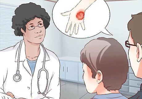 Know when to seek medical attention. In the case of a more serious burn, prompt medical attention is key to proper healing. It is important to go to the hospital if any of the following are present: You think it qualifies as a third degree burn. The surface area of the burn is equal to or larger than the surface area of the child's palm. It is a chemical burn or an electrical burn. There was smoke at the time of the burn — this can cause a smoke inhalation injury. The child shows signs of shock. (Symptoms include altered consciousness, paleness, dizziness or fainting, weakness, rapid heartbeat, or rapid or difficulty breathing.) Call emergency services if these symptoms are present. Physical abuse is suspected as a possible cause for the burn. If at all uncertain, it is best to seek the professional opinion of a doctor.
