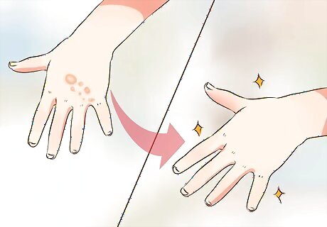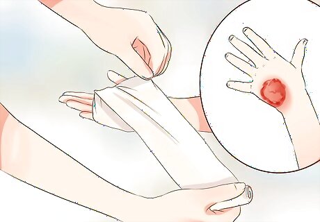 Leave small blisters unbroken. Oftentimes burns will leave the skin with some blisters present; if this is the case, let them heal naturally and do not attempt to break them open. If they have broken open on their own, clean them gently with soap and water and apply an antibiotic ointment prior to covering them with a bandage to prevent infection. Don't use hand sanitizers or harsh soaps and don't use rubbing alcohol or hydrogen peroxide to clean the area.