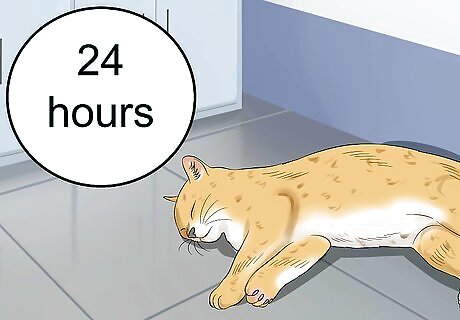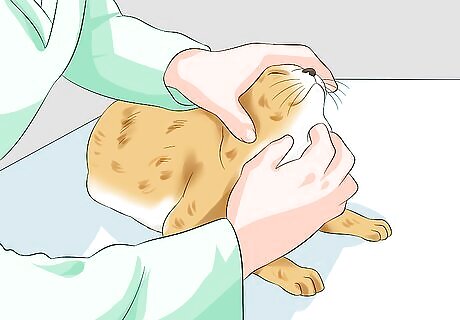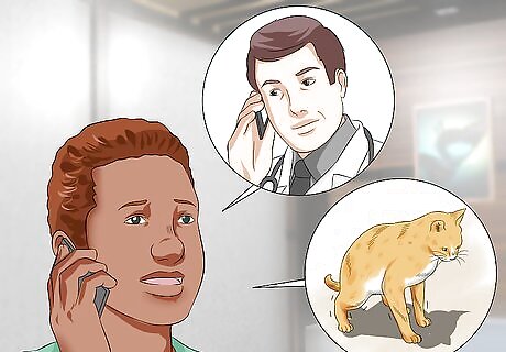 Take signs of pain and trouble moving seriously. In more serious cases, the cat can throw a blood clot, which then lodges in the main artery to the back legs. This causes pain, hind leg weakness, and cold back paws. In response to the pain, your cat may meow or make some other noise that expresses its discomfort. If your cat is experiencing these symptoms, take it to the veterinarian immediately. Call the veterinary clinic on the way there so that they can prepare for your arrival.
