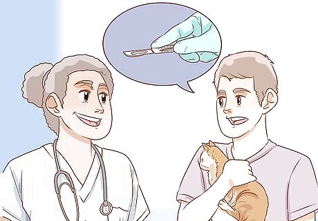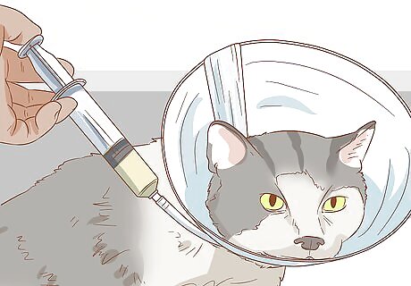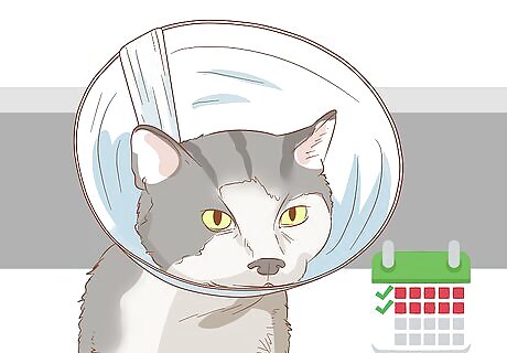 Administer all medications as directed. Following surgery, the cat will be hospitalized for one to two days. When you take it home, you might have to give it pain medication, anti-inflammatories, and antibiotics. Be sure to administer all medications according to the surgeon’s instructions, and bring your cat to all follow-up appointments.