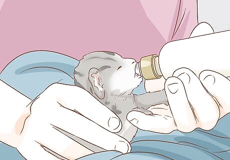 Feed your kitten through a long nipple. A kitten with a cleft palate will likely have difficulty nursing normally and will need to be bottle or tube fed. If the kitten has a suckling reflex and bottle feeding is possible, use a specially designed long nipple. This will reduce the amount of milk that passes through the cleft into the nasal cavity. You should feed a kitten every two hours around the clock. After three to four weeks of bottle feeding, you can wean the kitten onto soft, blended food.