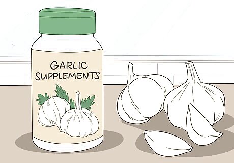 Opt for garlic supplements to support your liver. If you don’t want to cook with garlic, you might instead take a supplement. This will help reduce the stress on your liver while also improving your insulin resistance and lipid profile. Read the instructions on the bottle and take your supplement as directed. Check with your doctor to make sure garlic is safe for you. Garlic may cause bleeding, so a supplement may not be safe for you if you’re on a blood thinner. Additionally, garlic supplements may interact with HIV treatments.