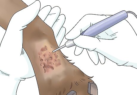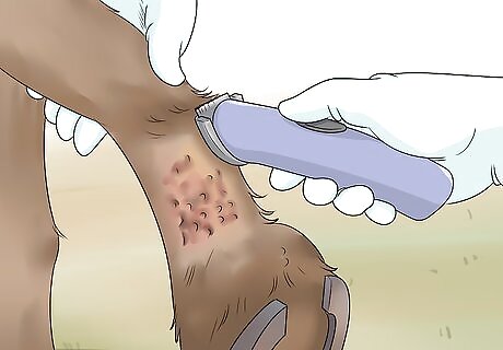 Have wounds cauterized, if necessary. After examining your horse, a vet may determine that sores on the affected site may need to be surgically burned, or cauterized. This might sound a little intense, but it is a fairly simple procedure that can be a good way to stop infection and encourage the site to heal. Carefully follow the vet’s instructions for post-procedure care.