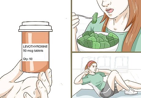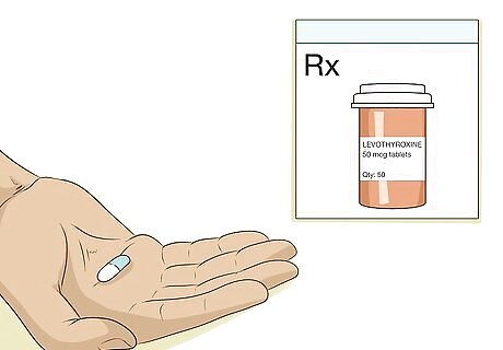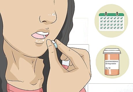 Begin hormone replacement therapy if your doctor prescribes it. Over time, Hashimoto's disease causes damage to your thyroid, eventually causing it to stop producing thyroid hormones altogether. Luckily, taking a daily dose of the synthetic thyroid hormone levothyroxine can balance your hormone levels, which can help alleviate any symptoms caused by hypothyroidism. Talk to your doctor about any other medications or supplements you take, including cholesterol medicine, antacids, and iron or calcium supplements, as they may affect levothyroxine. Levothyroxine is an oral medication, and you'll typically be directed to take it in the morning before breakfast. Your doctor will instruct you how long to wait after taking your medication before you should eat. Usually, you can take the levothyroxine 1 hour before eating or 3 hours afterward for best absorption. Did You Know? Sometimes hormones extracted from pigs are used in Hashimoto thyroid disease treatment. However, many doctors do not prescribe them, because although these medications are labeled as 'natural,' they are not necessarily compatible with the human body. Also, there are some concerns about the consistency of the products derived from this product.
